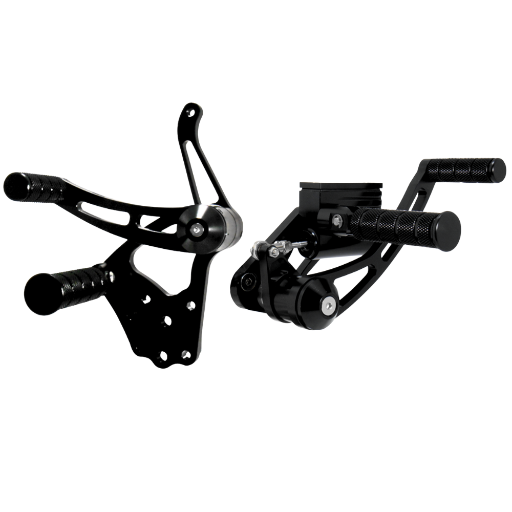 Are you looking to swap your mids to forwards so you can stretch out? This full set of mid controls is matched and ready to run. Choose your finish, bolt up the control plates to the frame, connect your linkages and plumbing, and you're set to go. These forwards look appropriate on a wide range of motorcycles, and the finish can be selected to either match or contrast with your motorcycle.