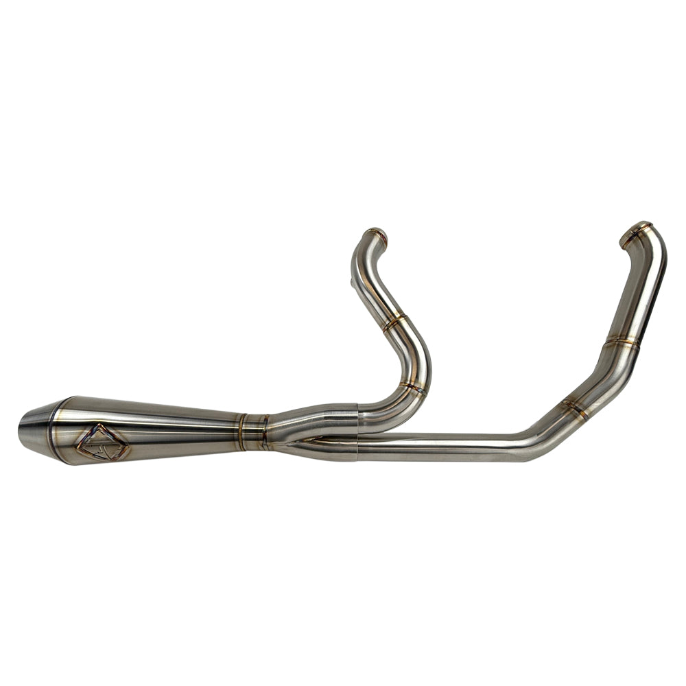 Specifically, the system is designed for monoshock Softails without factory bags. Like most 2-into-1 pipes, performance is the reason this exhaust exists. With three-stage stepped head pipes and a short muffler, the Big Bore promotes exhaust velocity. It differentiates itself from theĀ LaneSplitter by featuring a larger diameter muffler with a stepped baffle.