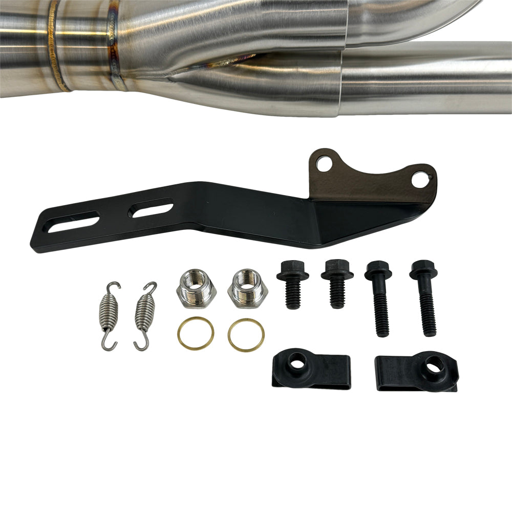 The exhaust will accept either 12mm or 18mm oxygen sensors; adapters are included so you can use either OE or aftermarket tuning setups. The mounting bracket and hardware are included. Exhaust spring clips are not included; they can be purchased separately.Ā Exhaust gaskets are not included and should be replaced every time an exhaust system is removed; they also can be purchased separately.Ā