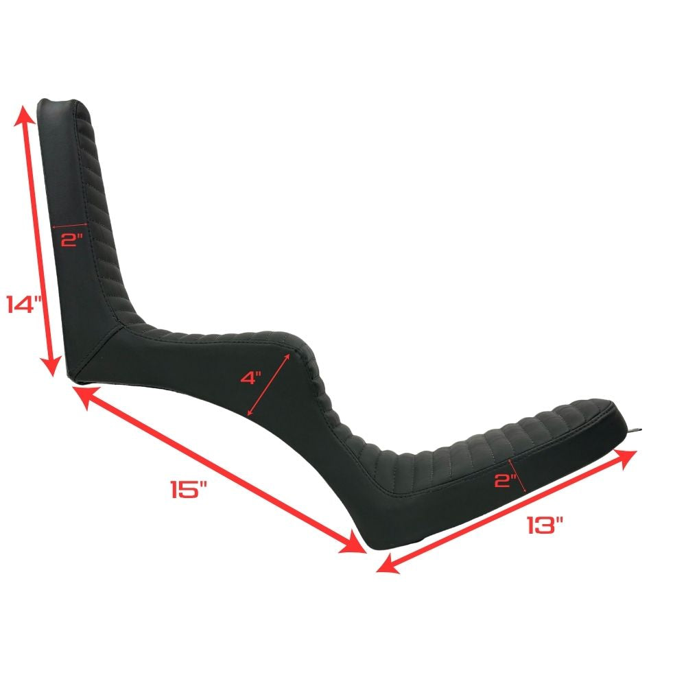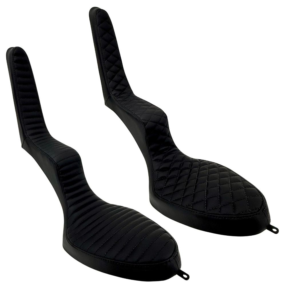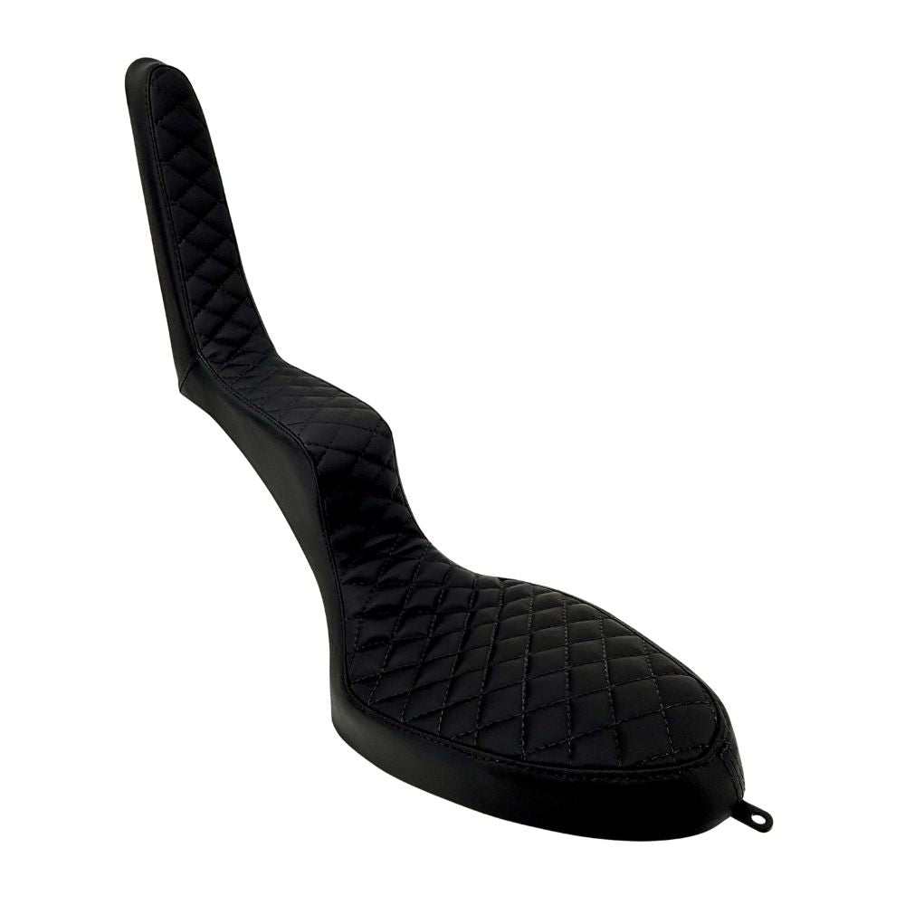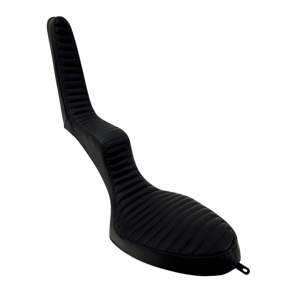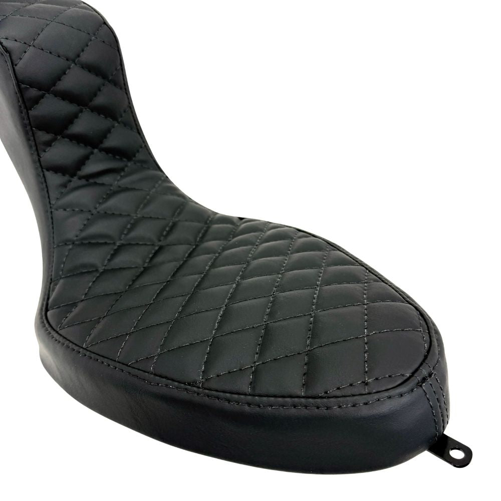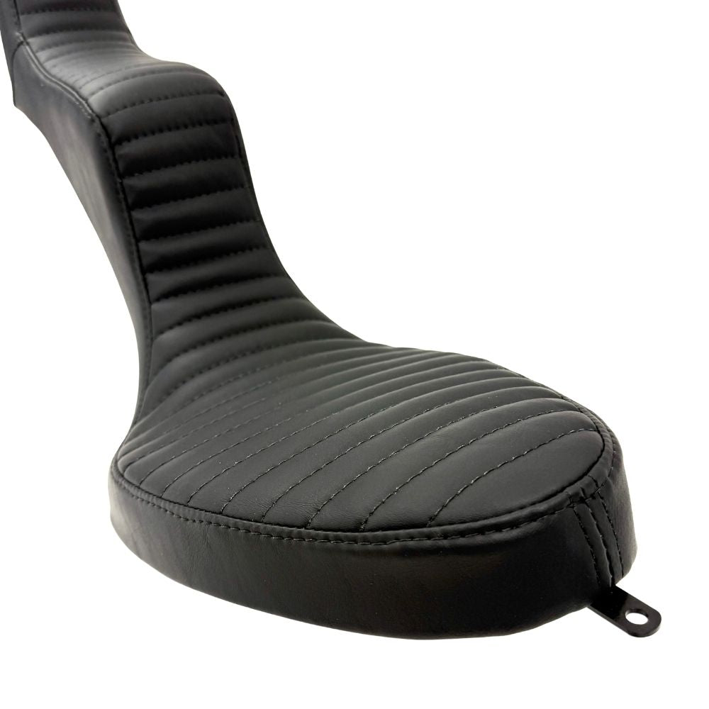 The seat features three attachment points—one tab at the nose, one tab at the tail, and a threaded insert for the top of the seat where it meets the sissy bar. The Sully's King & Queen is a traditional approach to a classic saddle. Grab one and bite some classic chopper style today!