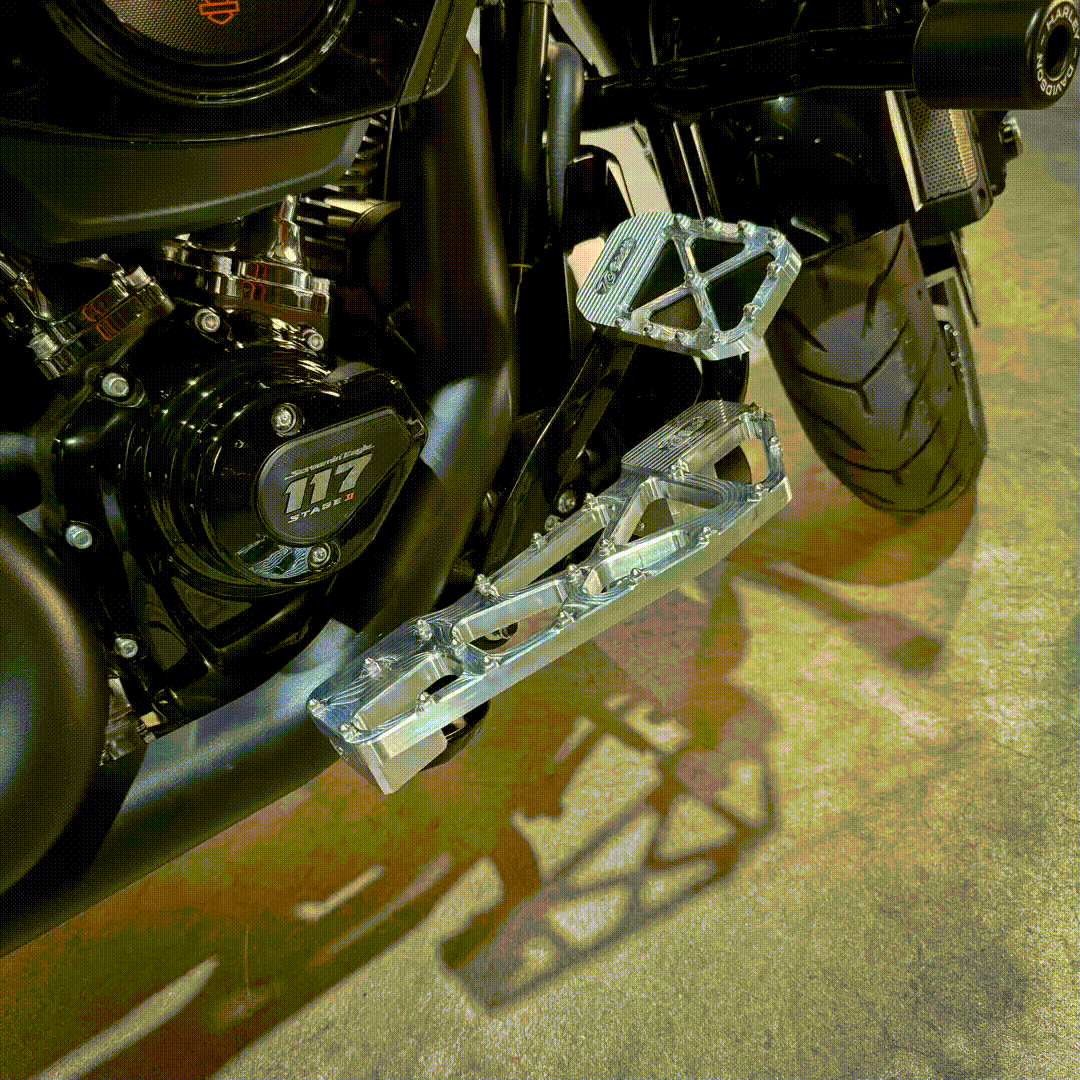 Harley Touring models are notorious for dragging floorboards on the pavement when making aggressive turns. Pairing one of these lift kits with a set of TC Bros. Pro Series MX Floorboards will greatly improve the ground clearance of your ride. Offering a full ½” of additional lift to our floorboards, this is a simple and effective solution to increase lean angle.