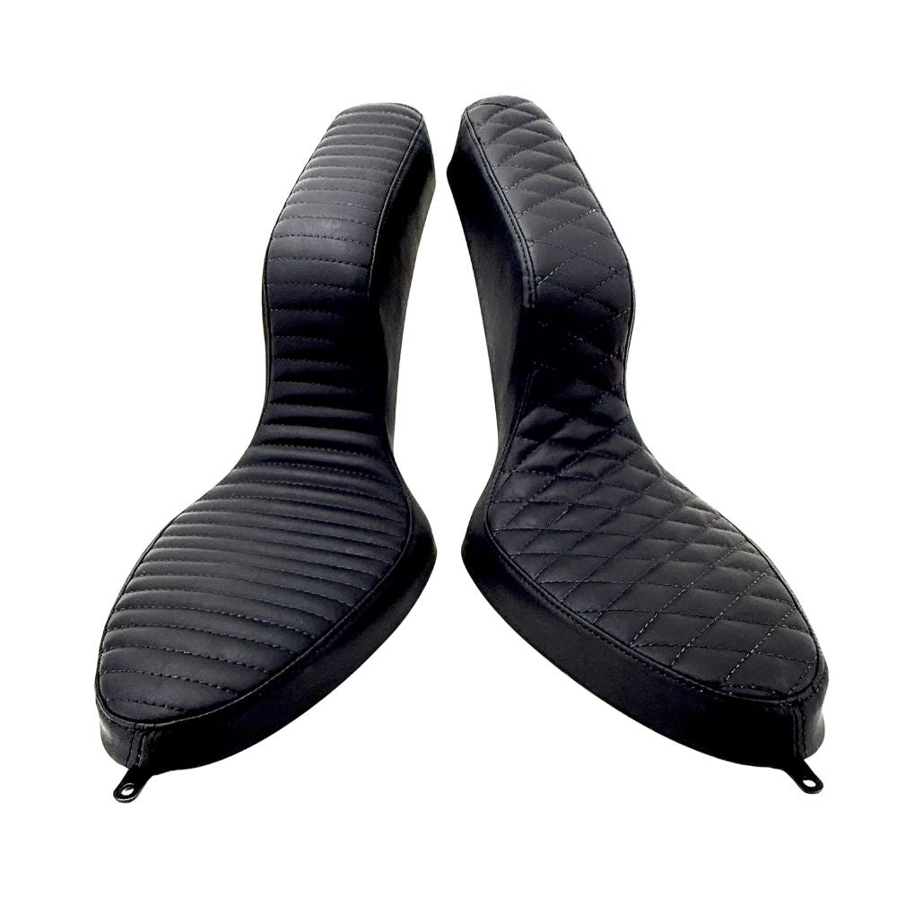 This Camel Back seat is handmade in the USA. It's built upon a solid steel pan for that aforementioned comfort and for longevity. The seat is then amply padded with foam, covered, and carpeted. The carpet protects your bike and the carefully selected foam protects your keister from the rigors of a long ride. The cover is hand-stitched in your choice of two great-looking, classic designs that look right at home on a traditional chopper.