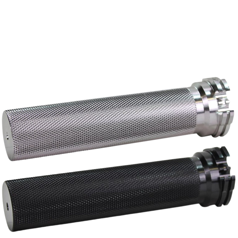 • Knurled finish accepts a huge variety of aftermarket rubber grips and often negates the need for messy grip glue