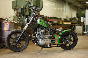 Holey Roller is no stranger to the alter! Created from a humble XS650, the running theme here is weight reduction and metal removal for performance and aesthetic reasons. We think of the XS platform as an excellent entry-level chopper candidate. They’re easy to find, mechanically simple, and can be reworked into cafés, trackers, scramblers—or choppers. We started with this example that had just 5,000 miles on the odo before we took the knife to it.