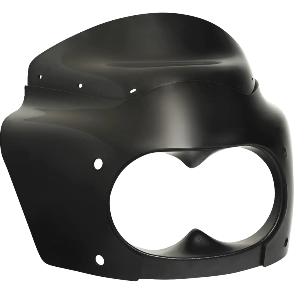 The Road Warrior fairing is a classic due to its lines that complement many Harley-Davidson front ends. It can be painted to match your bike, or run as-is since the gloss-black finish is top-tier. The interchangeable windshield system means you can quickly choose from different looks and levels of wind protection—many riders choose a short, dark windscreen for around town, and then a lighter tint, taller 'shield for distance work.