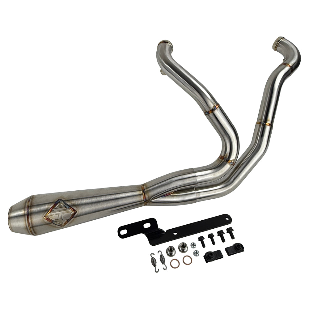 This exhaust is compatible with Sportsters equipped with either factory mid controls or forward controls. The exhaust requires the OEM mounting brackets to be reused.